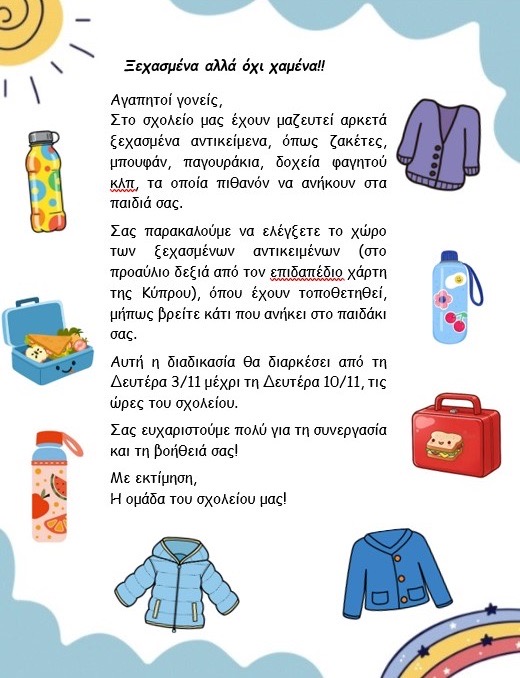 Σημαντικές πληροφορίες προς τους γονείς με την έναρξη της σχολικής χρονιάς |